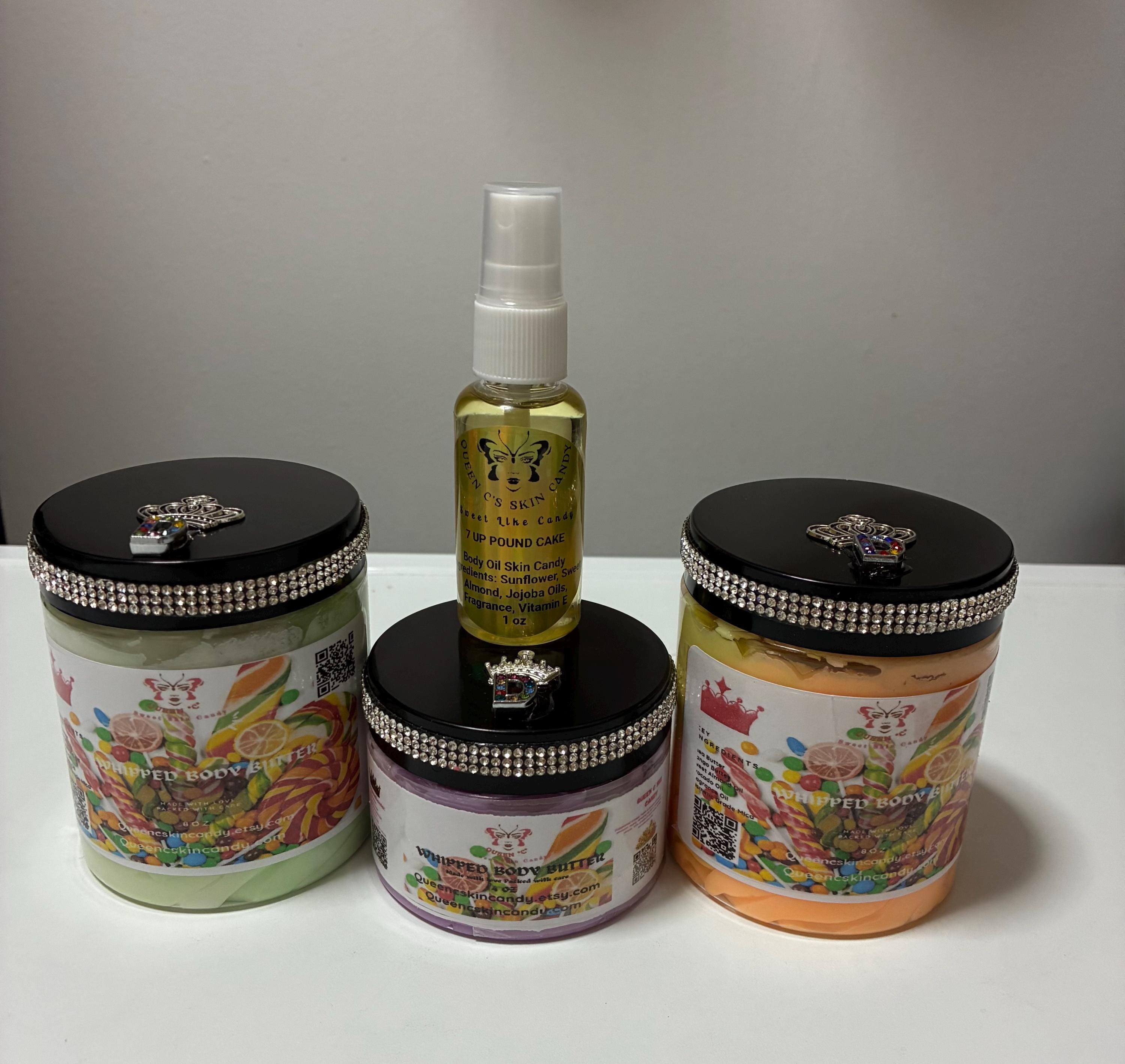 The Candy Shop Collection - Whipped Body Butter skin candy 8 oz, 4 oz & 2 oz - You can personalize your Bling Lid with initial